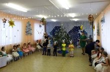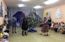 Новый год уже не за горами,Постучался он сейчас к ребятам,Дети в ожиданье замирают...Ёлку нарядили, ждут зверей лохматых.Прибежал зайчонок, белочка, лисичка.Ворон прилетел, медведь притопал...-Заходите, гости дорогие!Дед Мороз, Снегурочка и леший. -