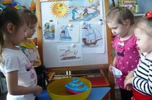 Малыши рассматривали картинки; слушали стишки и учились частично повторять текст, отвечать на вопросы, рассказывать о весенних природных явлениях. Малыши пускали кораблики в импровизированной весенней луже.