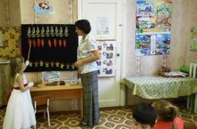 На занятии по ознакомлению с окружающим воспитанники старшей группы "Солнечные лучики" уточняли и закрепляли признаки и приметы зимушки-зимы. На фото Подгорная И.Г. и ее воспитанники