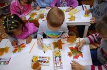 Воспитанники подготовительной группы учатся изображать кленовый листок с натуры. Педагог Теплякова Г.И.