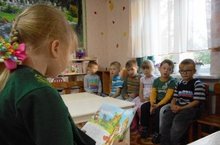 Аня Уфимцева не только умеет читать сама, но уже читает книги другим детям. На фото ребята подготовительной группы "Солнечные зайчики".