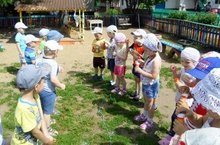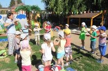 Утренняя гимнастика в детском саду имеет большое оздоровительное значение и является обязательной частью распорядка дня. Все мы знаем, что спеша на работу или по другим делам мы редко пытаемся провести утреннюю гимнастику со своими детьми перед детским садом. Именно по этой причине ежедневное её проведение в детском дошкольном учреждении должно быть обязательным. Утренняя гимнастика проводится в определённые часы до завтрака. Утреннюю гимнастику в детском саду проводит либо воспитатель, либо преподаватель физической культуры. Желательно помещение, где проводится утренняя гимнастика проветрить за несколько минут до прихода детей.Летом утреннюю гимнастику педагоги нашего детского сада проводят на улице.На фото ребята группы "Солнечные лучики" и педагог Сергевнина О.А. -