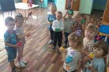 Воспитатель Мубаракшина Н.Ф. провела занятие в средней группе "Сказка" по лепке "Солнце в тучах". Педагог продолжает обучать детей скатывать маленькие шарики из пластилина, расплющивать их пальцем на картоне, создавая нужную форму предметов.