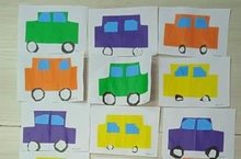 Аппликация в подготовительной группе №2 на тему "Легковая машина ". Цель: формировать у детей умение передавать форму машины, её деталей с помощью геометрических фигур.
