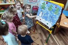Мубаракшина Н.Ф. продолжила обучение малышей второй группы раннего возраста рисовать методом тычка.