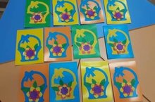 Дети второй группы раннего возраста"Сказка" сделали для своих мам поздравительные открытки. Аппликация "Корзина с цветами".