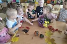 В рамках тематической недели "Осенняя пора" дети младшей группы совместно с воспитателем Гадеевой Л.Т. в ходе ООД по развитию речи и ознакомлению с окружающим миром познакомились с понятием "время года - осень", с сезонными изменениями в природе; изображали прекрасное время года в творческих работах.