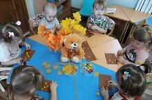 Лепка во второй группе раннего возраста "Падают, падают листья". Обучать детей создавать рельефное изображение из пластилина - отщипывать кусочки желтого, красного, оранжевого цвета, прижимать пальчиками. Укреплять пальца и кисти рук.