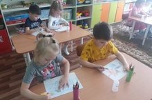 В рамках тематической недели "Живая и не живая природа" дети младшей группы "Пчелки" рисовали солнышко. Воспитатель Гервасьева Т. Ю. обучала детей передавать в рисунке образ солнышка. Продолжала обучать правильно пользоваться кисточкой, краской, водой. Упражняла детей в умении создавать яркий выразительный образ из цветного пятна.