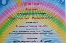 Дипломом I степени II Республиканского Конкурса "Народы разные-Республика одна" награждается воспитатель Гервасьева Татьяна Юрьевна.