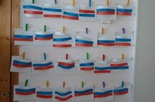 Цель: закрепить знания детей о символе России - государственном флаге. Познакомить с приёмом наклеивания изображения флага из полосок бумаги, частично создавая иллюзию передачи объёма. Воспитывать чувство гордости за свой народ, свою Родину.