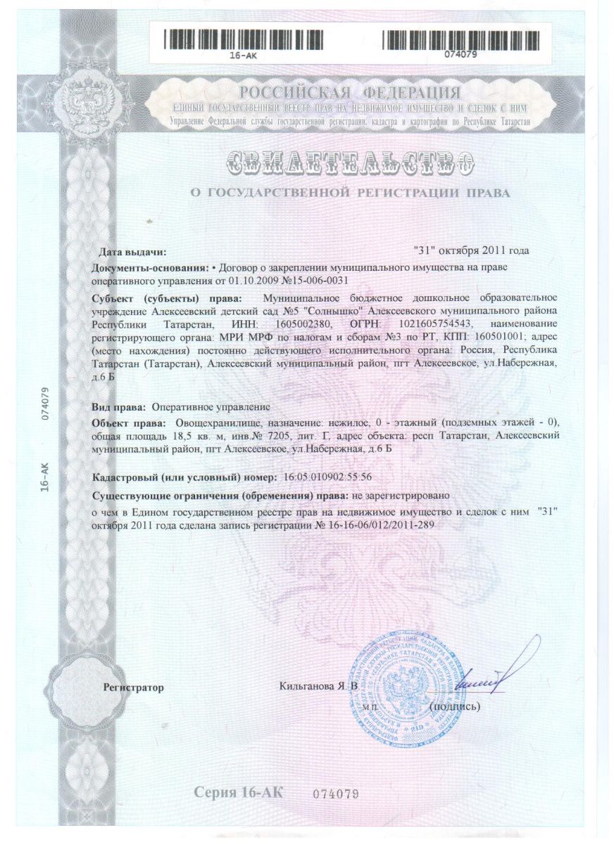 13.Свидетельство о государственной регистрации права ( овощехранилище)