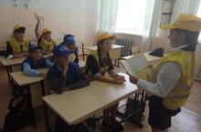 В рамках акции "Внимание - дети! " учащиеся 7 класса провели викторину "Знать положено" по правилам дорожного движения. Также они выучили песню "Шагаем весело" на тему дорожного движения и исполнили её вместе.