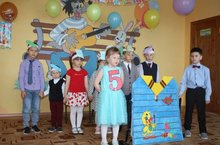 Выпускной бал в детском саду — это особое событие для каждого ребенка и его родителей, это первая ступенька во взрослую жизнь. Кажется, что недавно они начали ходить в детский сад, но уже скоро — будущие первоклассники. Выпускной бал прошел в теплой, дружеской обстановке. Начался праздник с торжественного выхода выпускников — дети как-то сразу повзрослели: красивые, нарядные, они стали похожи на школьников. В течение всего утренника дети пели песени, рассказали стихи, порадовали танцем, сыграли сценку "Портфель-теремок".