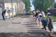 Обучающиеся из пришкольного лагеря "Робин Гуд" занимаются благоустройством школьной территории, ухаживают за цветами, поливают и пропалывают клумбы.