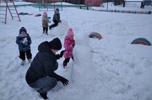 Мы лепили снеговиков. Выпало много мокрого снега. Мы вышли на прогулку, и дети закричали «Ура!», снега было очень много и главное он лепился. ... Прогулка прошла на славу. Дети не только слепили снеговиков,но у всех детей поднялось радостное настроение. И в процессе лепки снеговиков дети были очень дружными, лепили сообща, советовались друг с другом, договаривались. Помогали друг другу. На прогулке мы вспомнили и о сезонных изменениях и определили свойства снега.