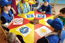 Учащиеся из отряда "ЮИД" провели с дошкольниками беседы по теме: "Какие правила дорожного движения вы знаете?", "Внимание, дорожные знаки!" . Дошкольники получили массу впечатлений от данной встречи,и конечно, закрепили свои знания по Правилам дорожного движения.