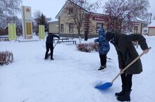 Учащиеся 9 класса расчистили снег на территории памятника участникам Великой Отечественной войны.
