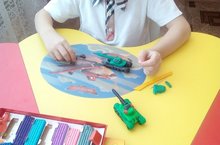 В канун 75-летия со Дня Победы. Дети дошкольной группы слепили один из символов Победы-танк Т-34.