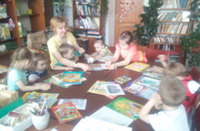 Сегодня всех воспитанников детского сада пригласила в гости сельский библиотекарь. Она подготовила интересное мероприятие "В гостях у сказки". Дети с удовольствием отгадывали загадки,искали отгадки в книгах,играли в сказочные игры, а в конце мероприятия дети попали в "Книжкину больницу", помогли ремонтировать книги.
