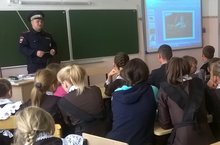 Сегодня была организована встреча с представителем ГИБДД по Алексеевскому району Самсоновым С.А, который рассказал ученикам о правилах поведения на дорогах юных велосипедистов, о правах, разрешающих вождение скутера, мотоцикла, велосипеда. А также напомнил о правилах перевозки детей до 12 лет. В подарок школе была вручена методическая литература по ПДД.