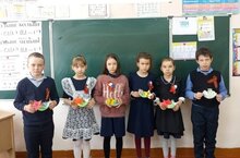 Егорова В., ученица 3 класса и Егорова У., ученица 6 класса приняли участие в акции "Окна Победы". Эту акцию они посвятили своему прадедушке Постарнак Константину Еремееаичу 1914 года рождения. Дедушку призвали 9 августа 1941 года из Урванский РВК, Кабардино-Балкарская АССР Урванский р-н как младший начальный состав на Южный фронт. Дедушка был тяжело ранен в боях за оборону города Таганрог в руку и спину. После госпиталя Постарнак К.Е. в феврале 1942 года был приписан к 356 запасному стрелковому полку 15-й стрелковой дивизии. Дедушка Костя продолжил защищать нашу Родину, и был зачислен в 567 штурмовой авиационный полк, служил авиационным мастером, ремонтировал и отправлял на боевой вылет самолеты. На 1 Белорусском Фронте 567 ШАП участвовал в боях 8,5 месяцев, сделал 1273 вылета, потерял 18 летчиков (45%), 19 воздушных стрелков (47%) и 44 самолета. На одного сбитого летчика приходилось 70 вылетов. Дедушка Постарнак К.Е.., служа на 1 Белорусском фронте, обеспечил 60 самолетный вылетов без единого отказа вооружения, отремонтировал 9 единиц вооружения в полевых условиях, проявил изобретательскую смекалку и ускорил повторный боевой вылет самолета до 20 минут. За что был награжден орденом « За боевые заслуги». За заслуги в Берлинской операции полк получил почётное звание «Берлинский». Личный состав полка был награждён в полном составе медалью «За взятие Берлина». Всю свою жизнь проработал и прожил в сельской местности.