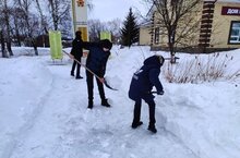 Юнармейцы после прошедшего снегопада организовали уборку у памятника воинам-землякам, погибшим в годы Великой Отечественной войны
