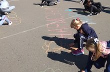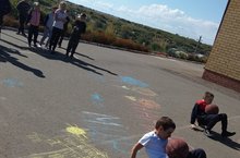 Во всех классах прошли классные часы "Экстремизму нет!". Начальные классы устроили конкурс рисунков на асфальте "Мы рисуем мир!"