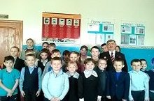 Сегодня в школьном уголке Боевой славы появился еще один стенд, посвященный героям Афганистана и Чечни. На открытие стенда был приглашен полковник в отставке Колоколов И.П.