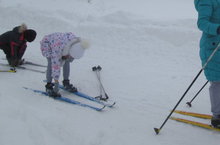 Учимся одевать лыжи и делаем первые шаги.