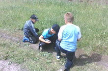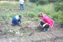 Воспитанники лагеря труда и отдыха совместно с воспитателями работали на пришкольном участке. Занимались прополкой грядок.