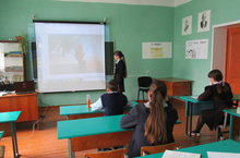 В школе началась подготовка к 71 -ой годовщине Победы в Великой Отечественной войне. Учащимися школы был обновлен стенд со списком участников войны. Учитель истории Тюкарева Е.А. проводит 5 -ти минутный информационный блок по событиям Великой Отечественной войны.