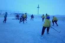 В нашей школе во внеурочное время была проведена "Зарница. Соревнования между командами зеленых и синих состоялись на льду хоккейной коробки - это шорт-трек, эстафета на льду, хоккейный матч, со счетом 2:1 победили зеленые.