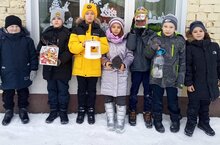 Акция "Помоги пернатым". Ребята сделали кормушки и развесили на территории школы.