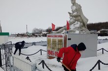 Юнармейцы вычистили территорию памятника павшим воинам после очередного снегопада