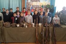 Сегодня у нас в школе прошла встреча учащихся с представителем музея "Родного края" Осяниным В.А., который показал экспонаты, рассказал где они были найдены, сторию военной формы от царских времен до ВОВ, историю оружия разных времен. Ребятам была предоставлена возможность своими руками потрогать и примерить экспонаты.