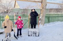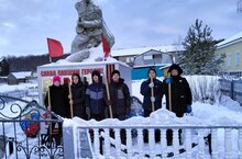 Ребята из отряда юнармейцов расчистили территорию памятника от снега