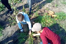 Пришла осень. Урожай на пришкольном участке вырос. Пришла пора его убирать. Всем коллективом школы и учениками сегодня убрали морковь и свеклу.
