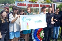К Дню Памяти и Скорби, 22 июня, воспитанники пришкольного лагеря возложили цветы к памятнику Павшим в ВОВ