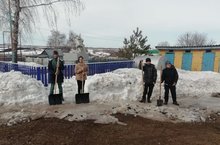 Сегодня прошел субботник .Учащиеся раскидали снег на территории школы и территории памятника павшим в ВОВ