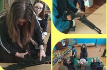 В рамках месячника военно- патриотического воспитания прошла игра "Зарница". Станция "Сборка и разборка автомата"