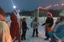 В детской игровой программе приняли участие ребята и учителя. Возле елки играли в игры и водили хороводы.