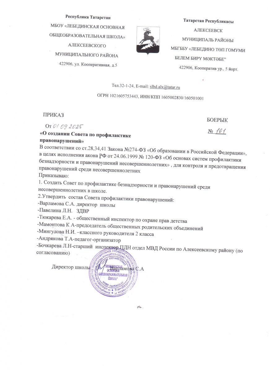 Приказ о создании Совета профилактики
