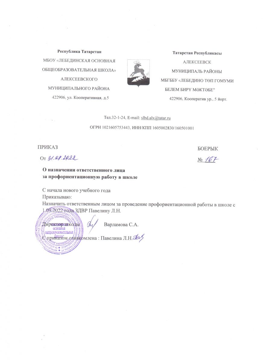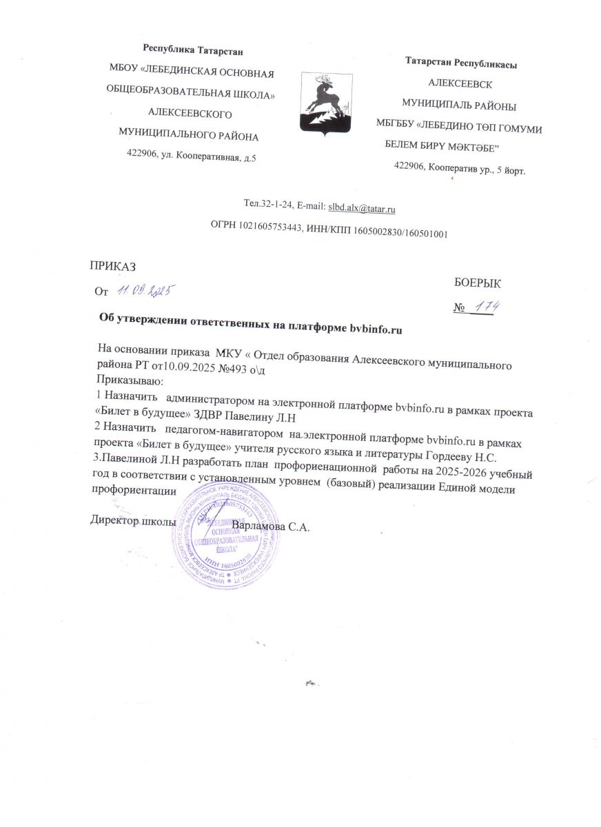 Приказ о назначении ответственных за работу на платформе Билет в будущее.