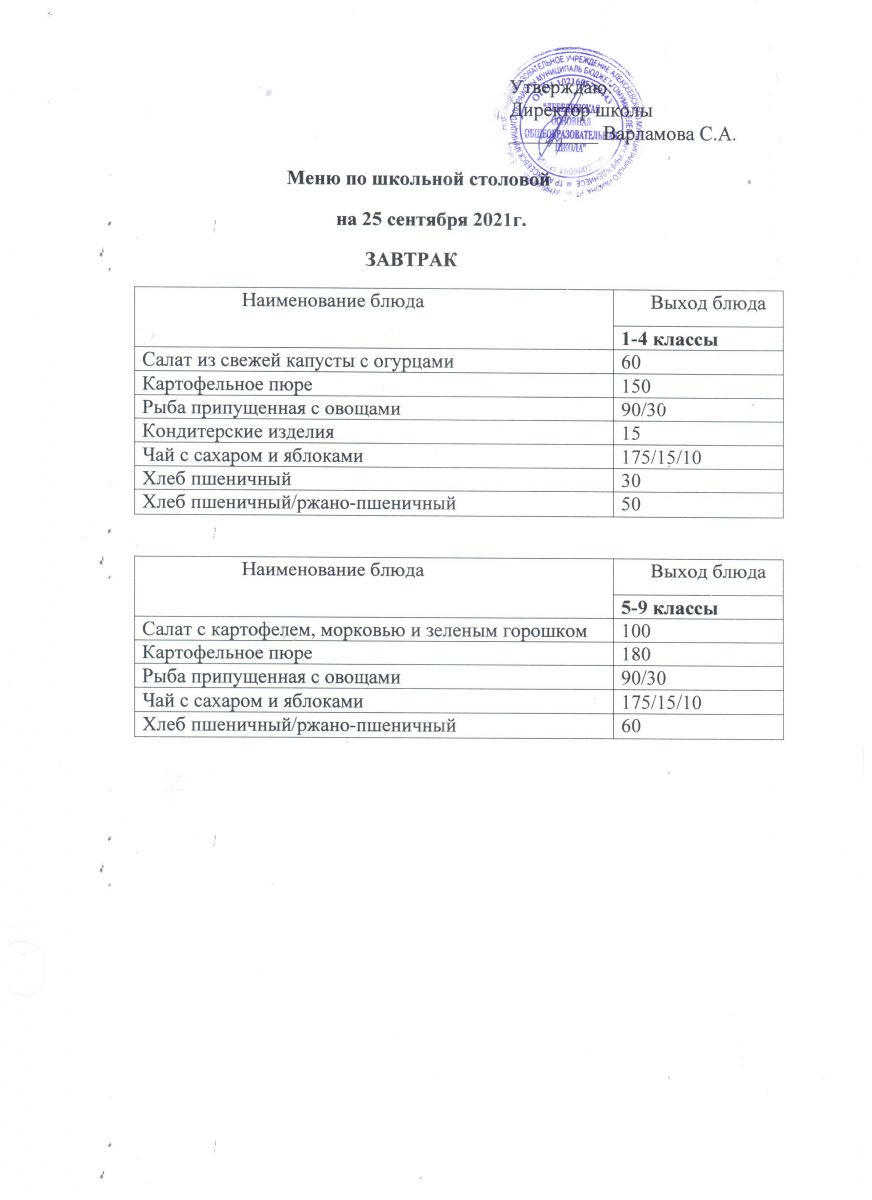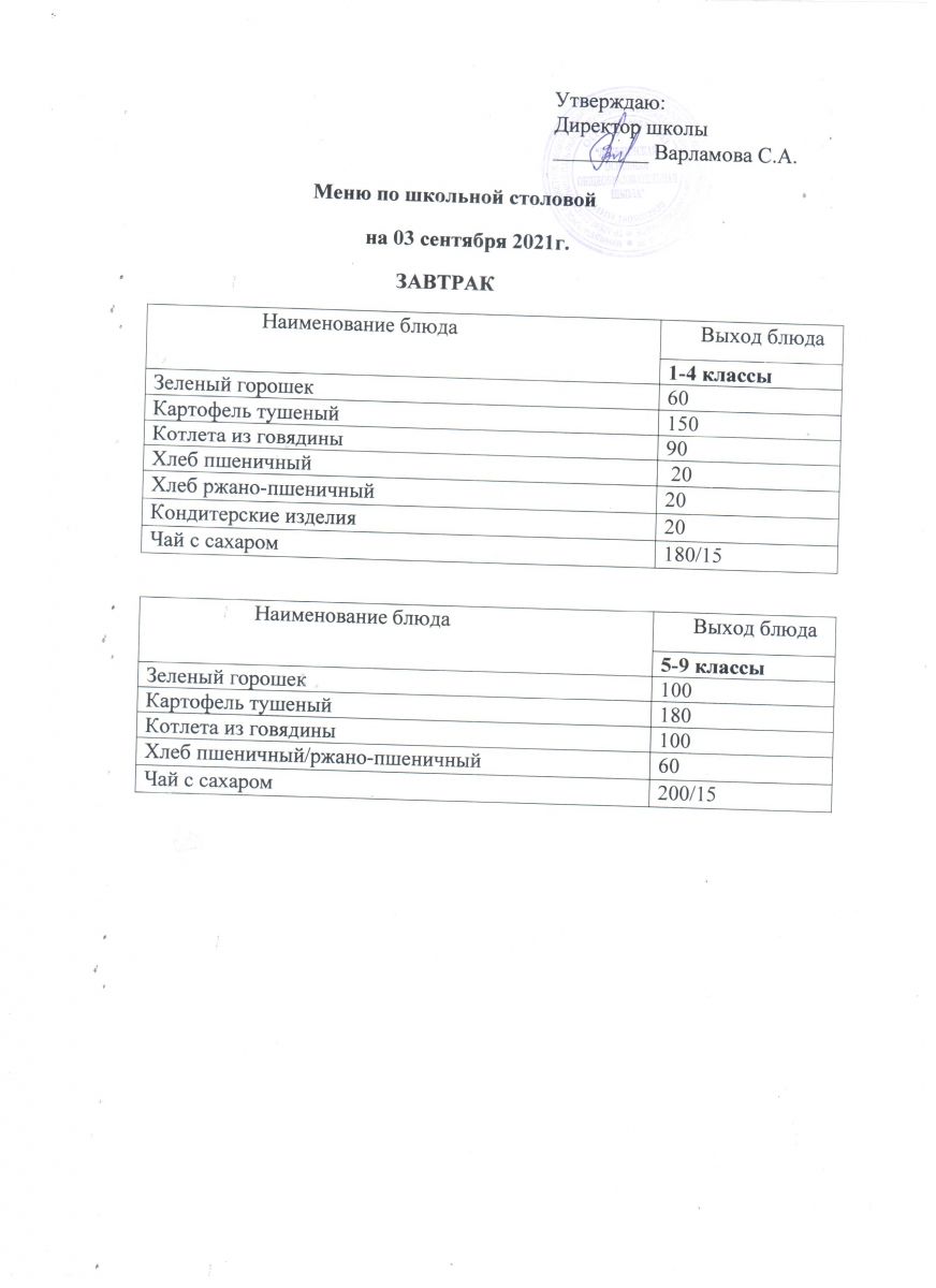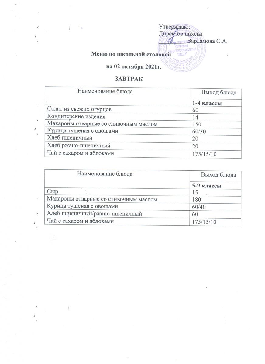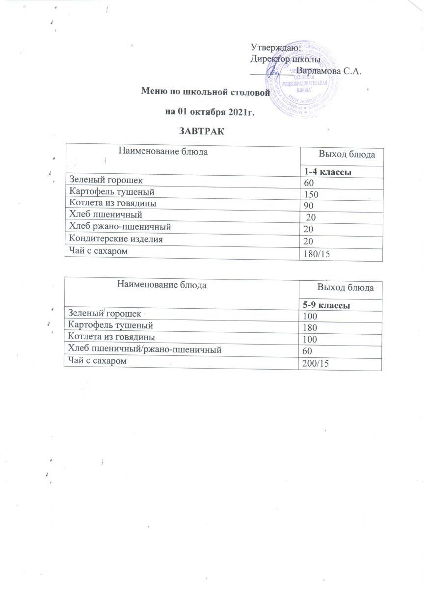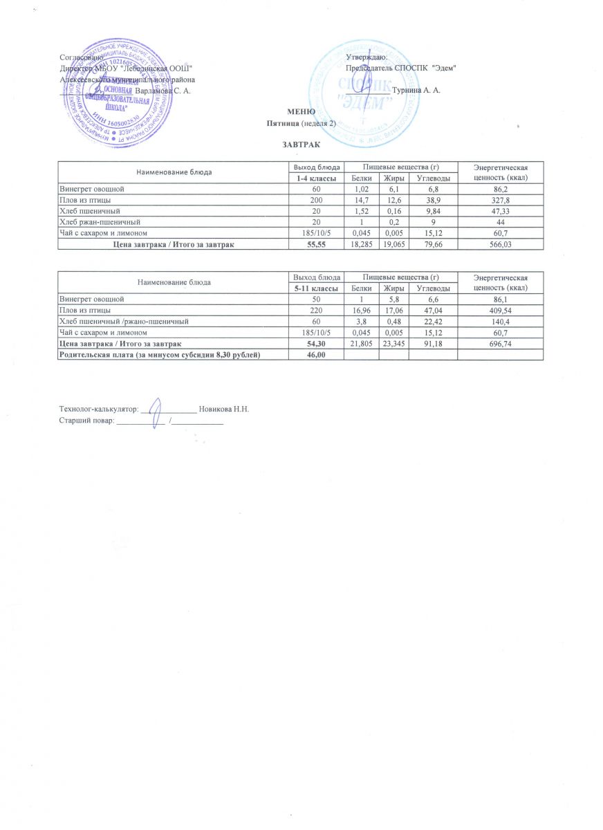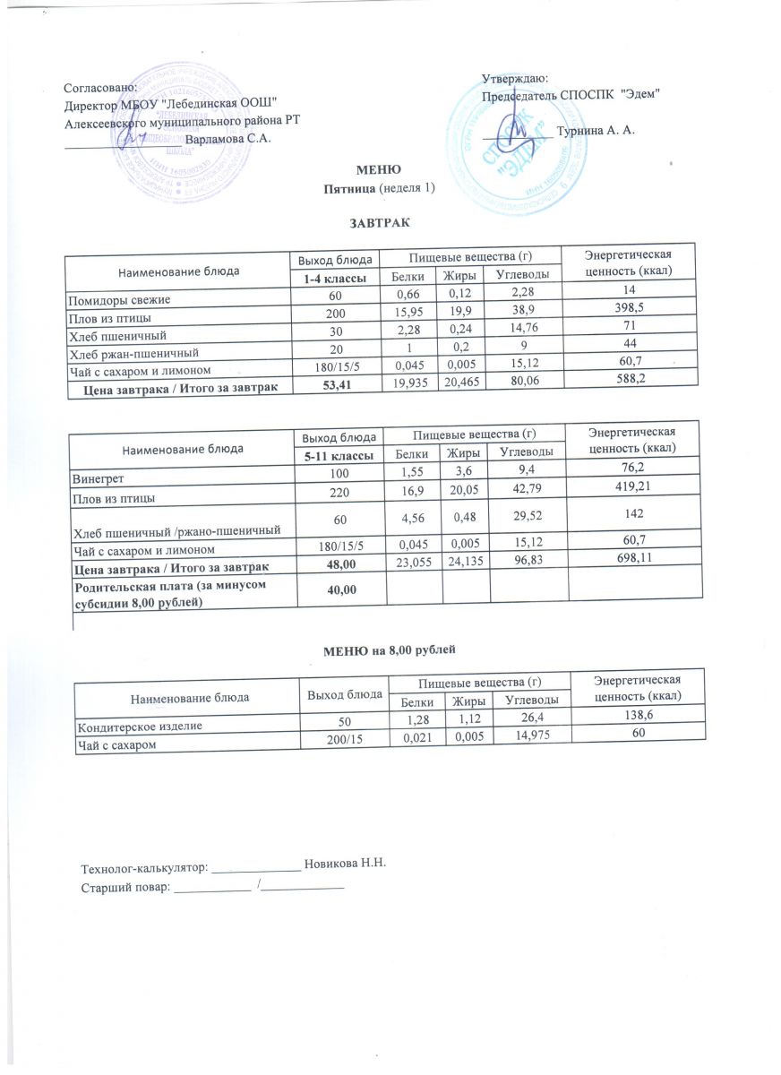 Меню по школьной столовой на пятницу 1 неделя 2021.