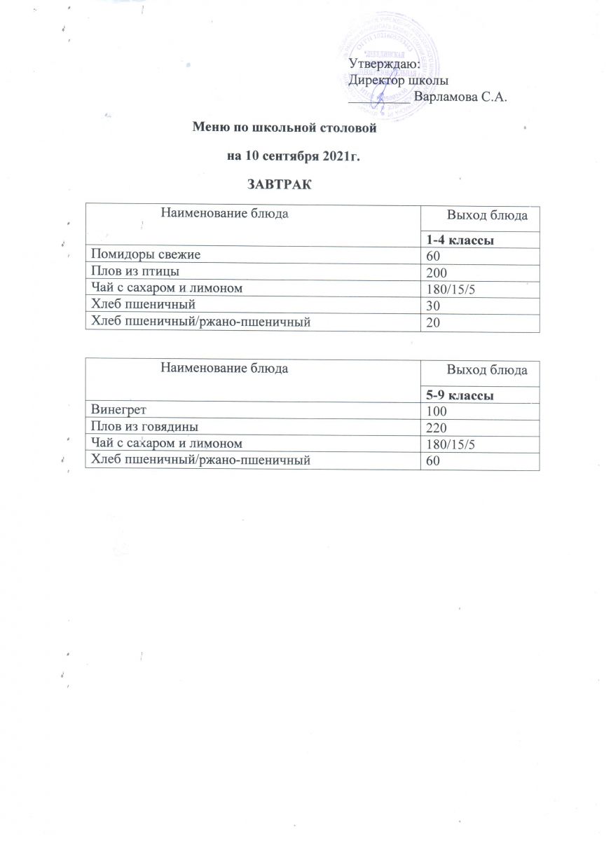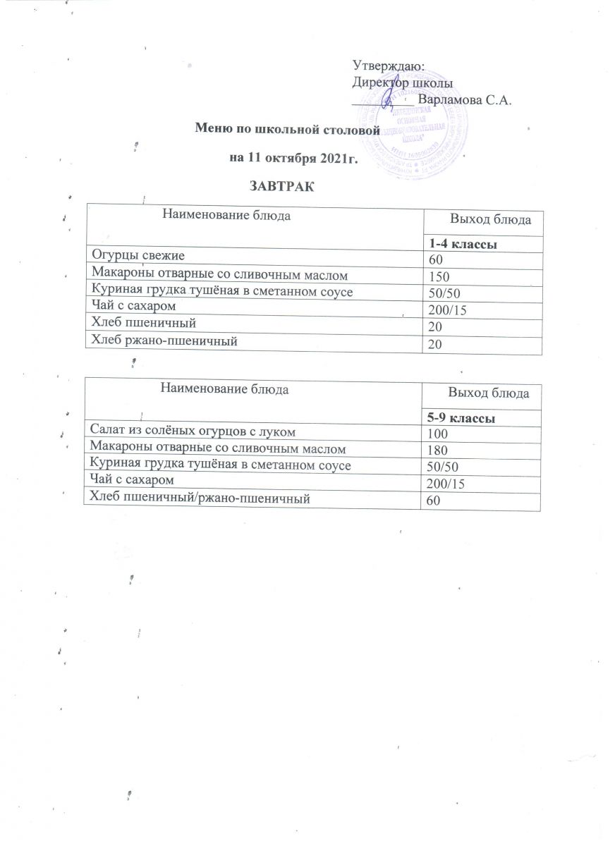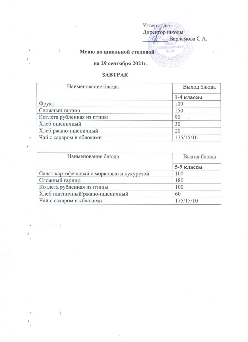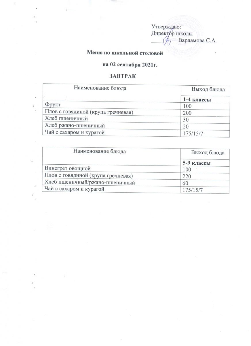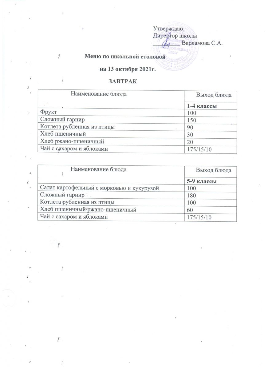 Меню по школьной столовой на пятницу 1 неделя 2021.