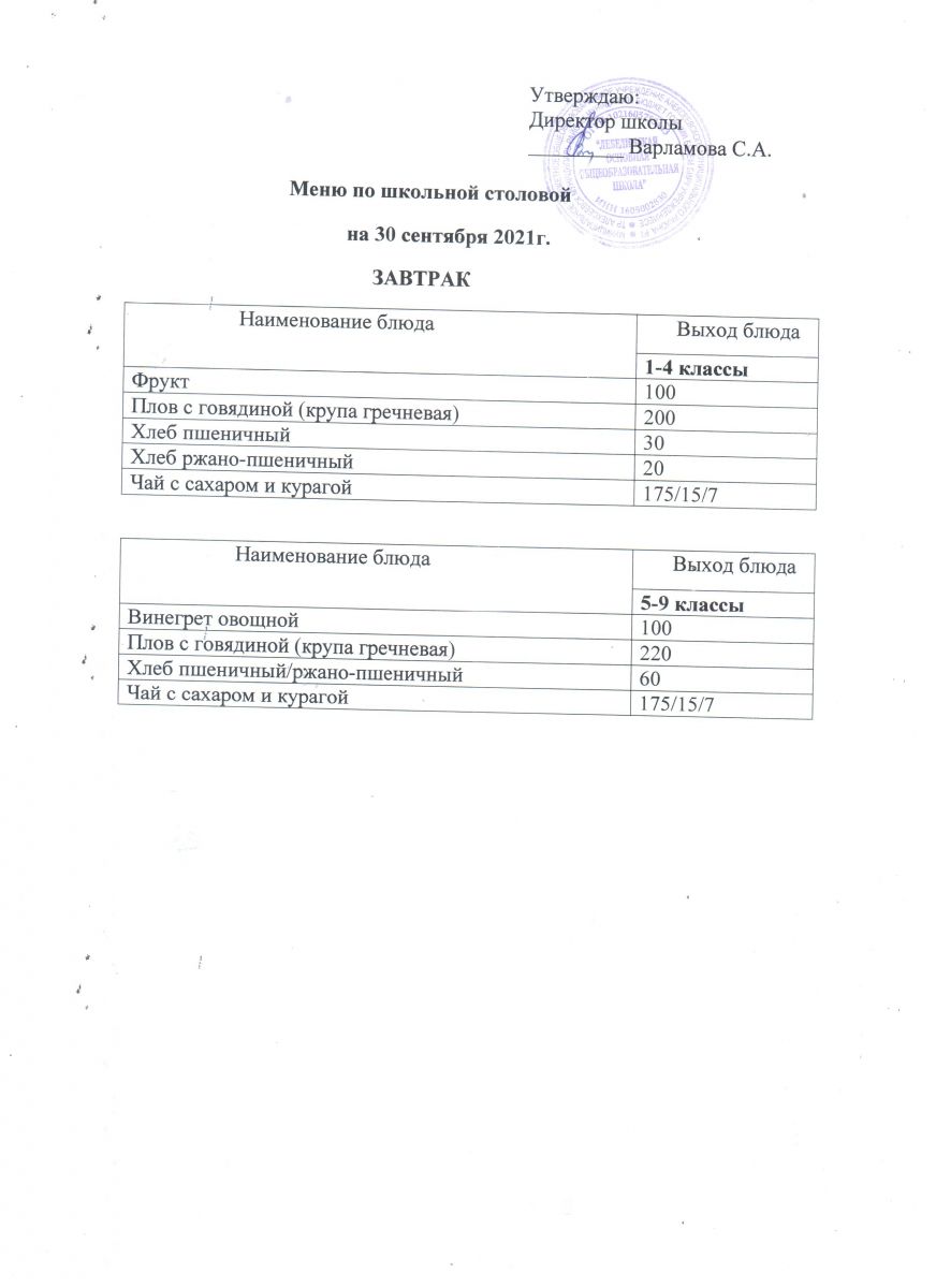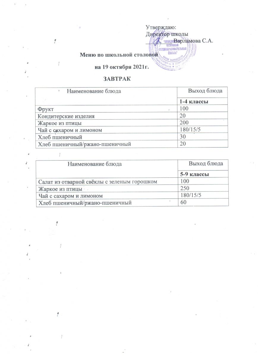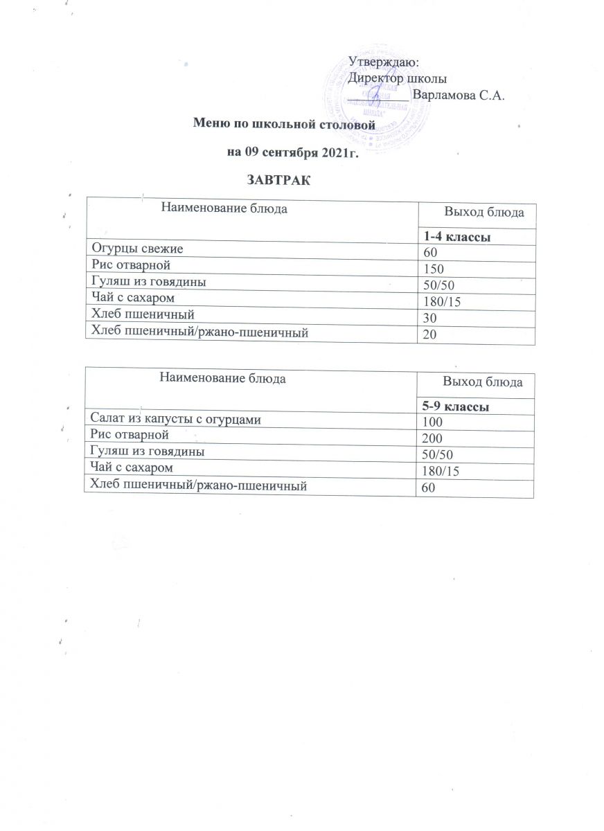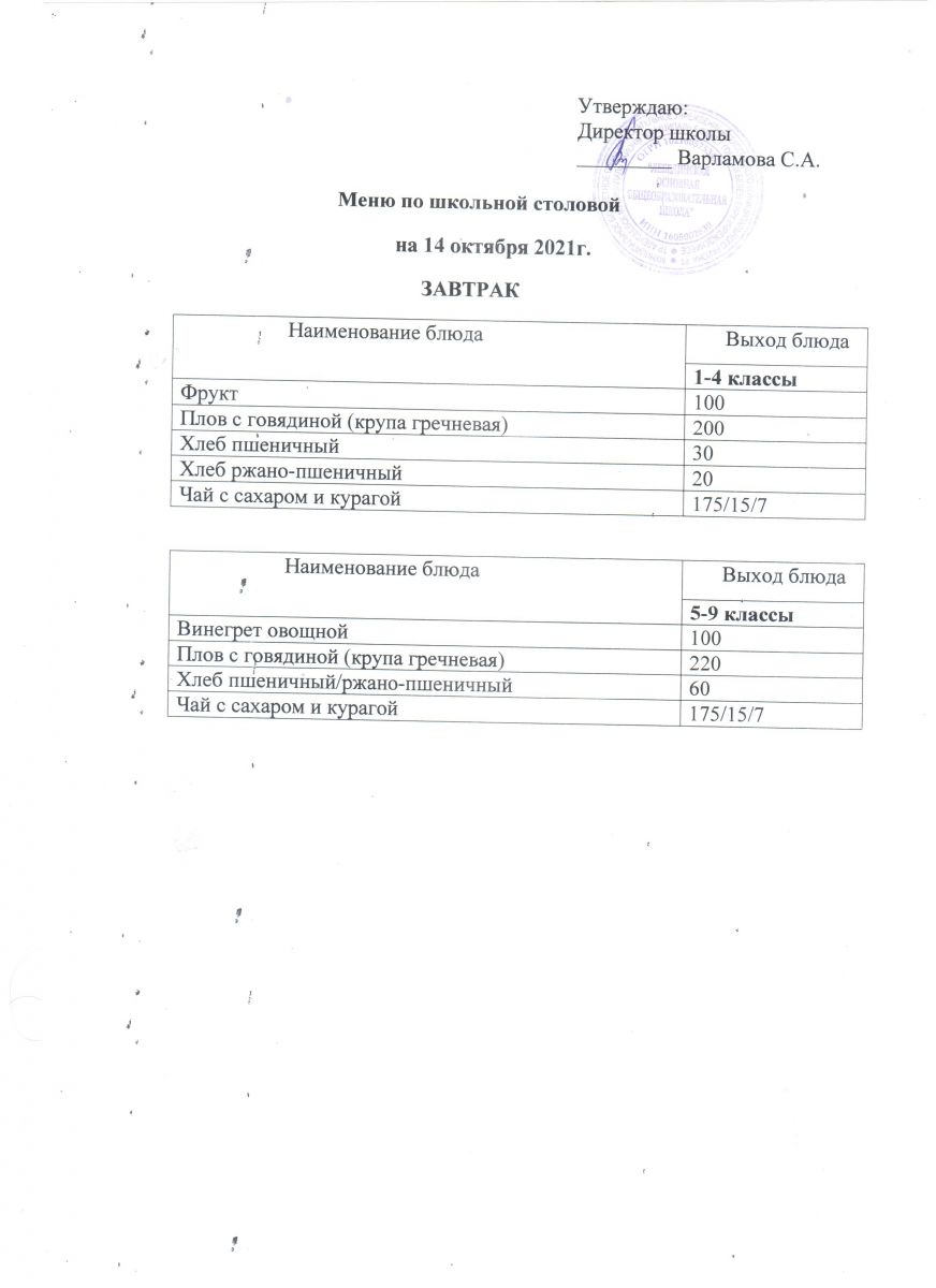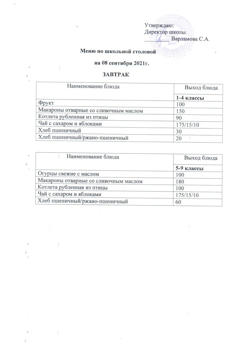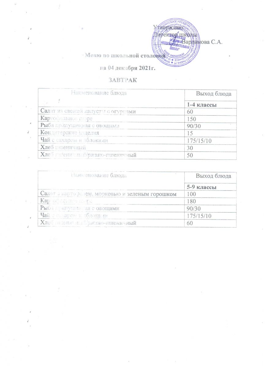 Меню по школьной столовой на пятницу 1 неделя 2021.