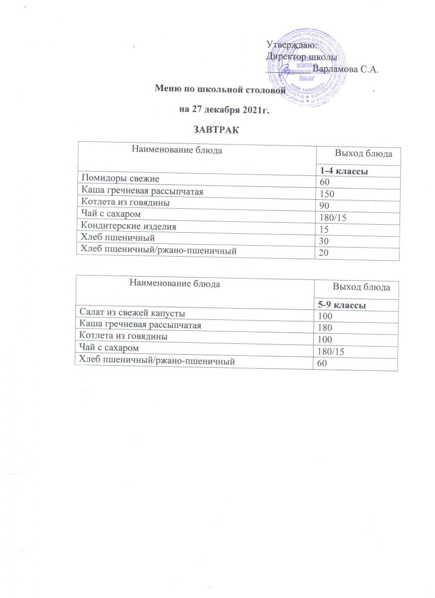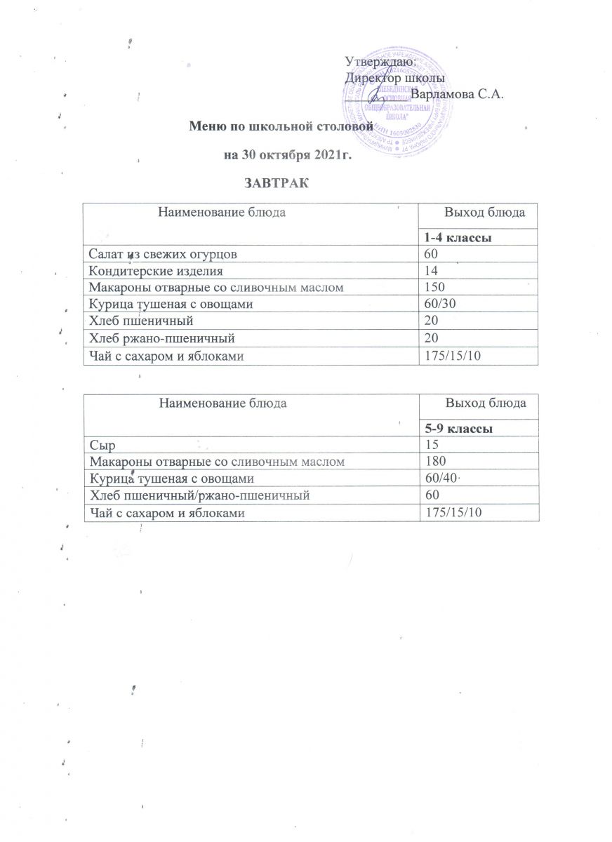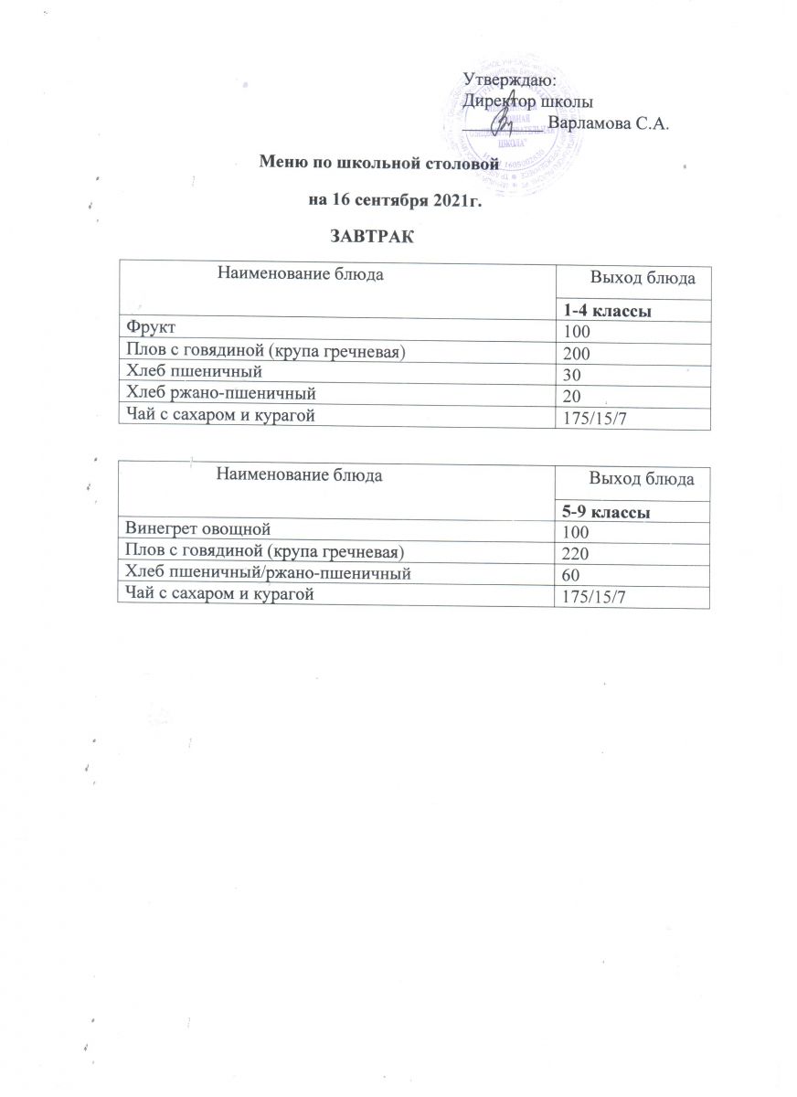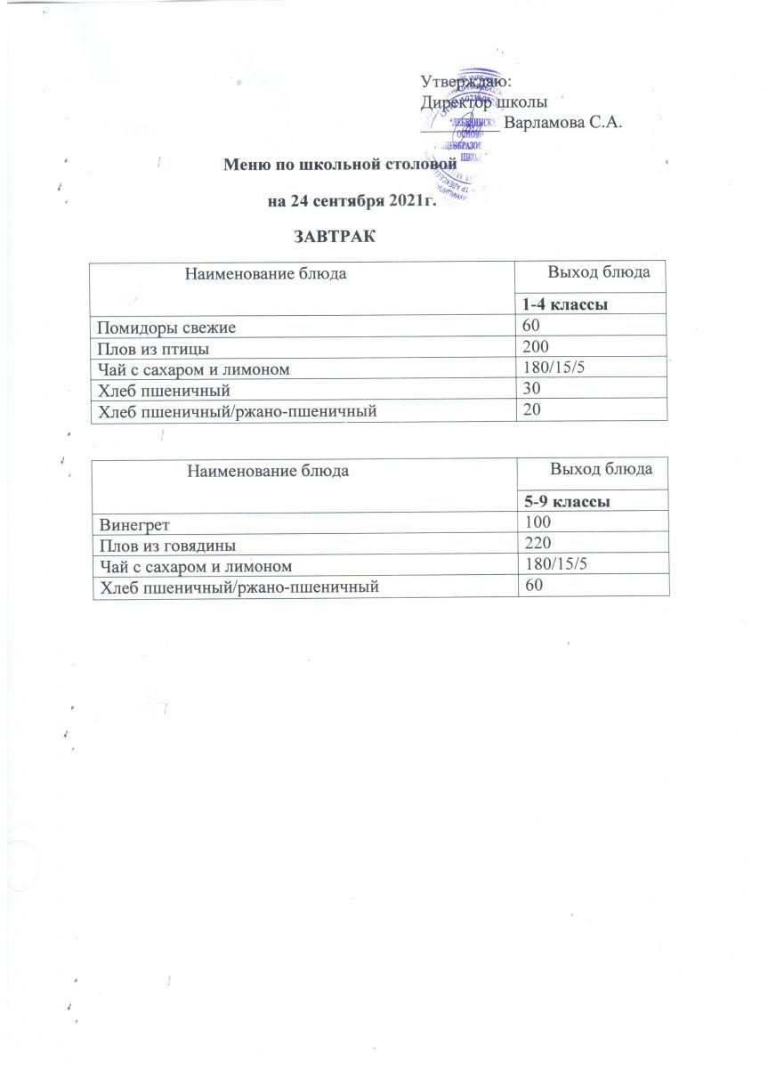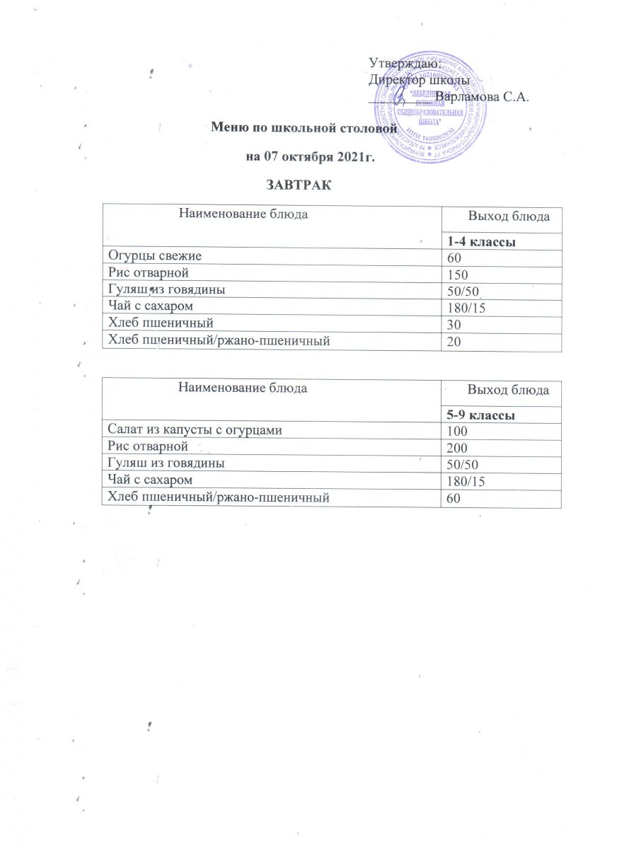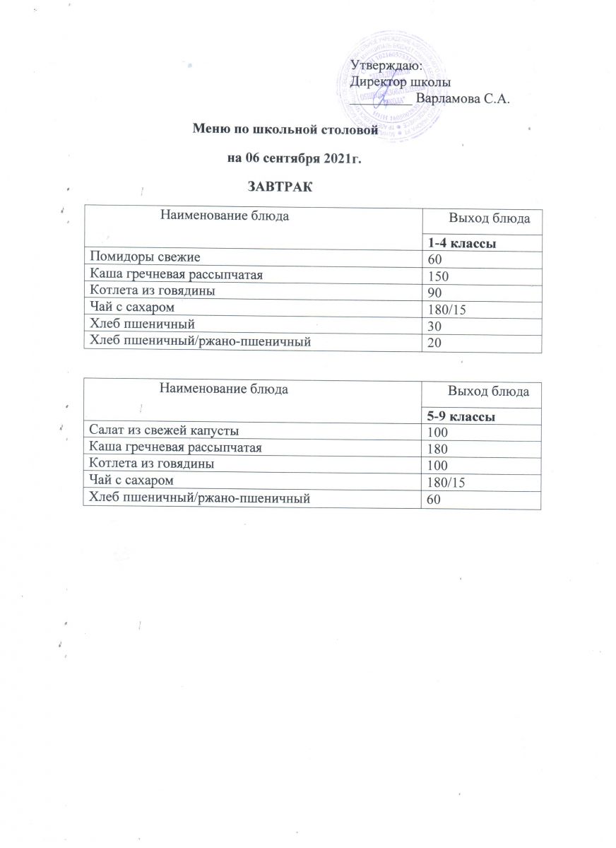 Меню по школьной столовой на пятницу 1 неделя 2021.