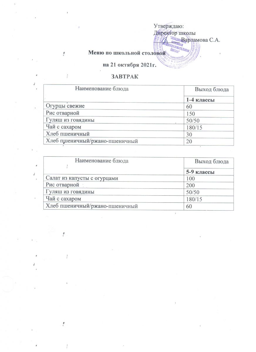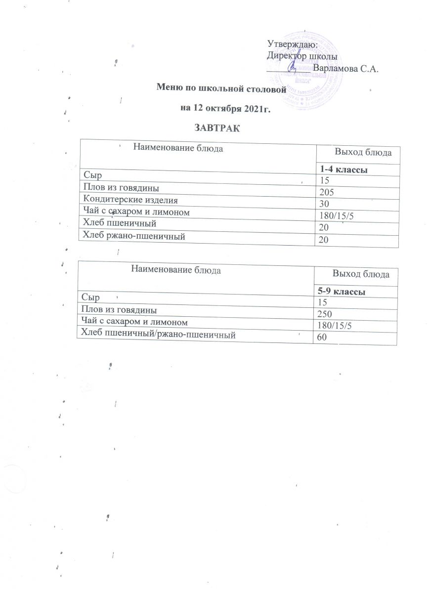 ОСНОВНОЕ ДВЕНАДЦАТИДНЕВНОЕ МЕНЮ ПО ШКОЛЬНОЙ СТОЛОВОЙ НА 2021 УЧЕБНЫЙ ГОД