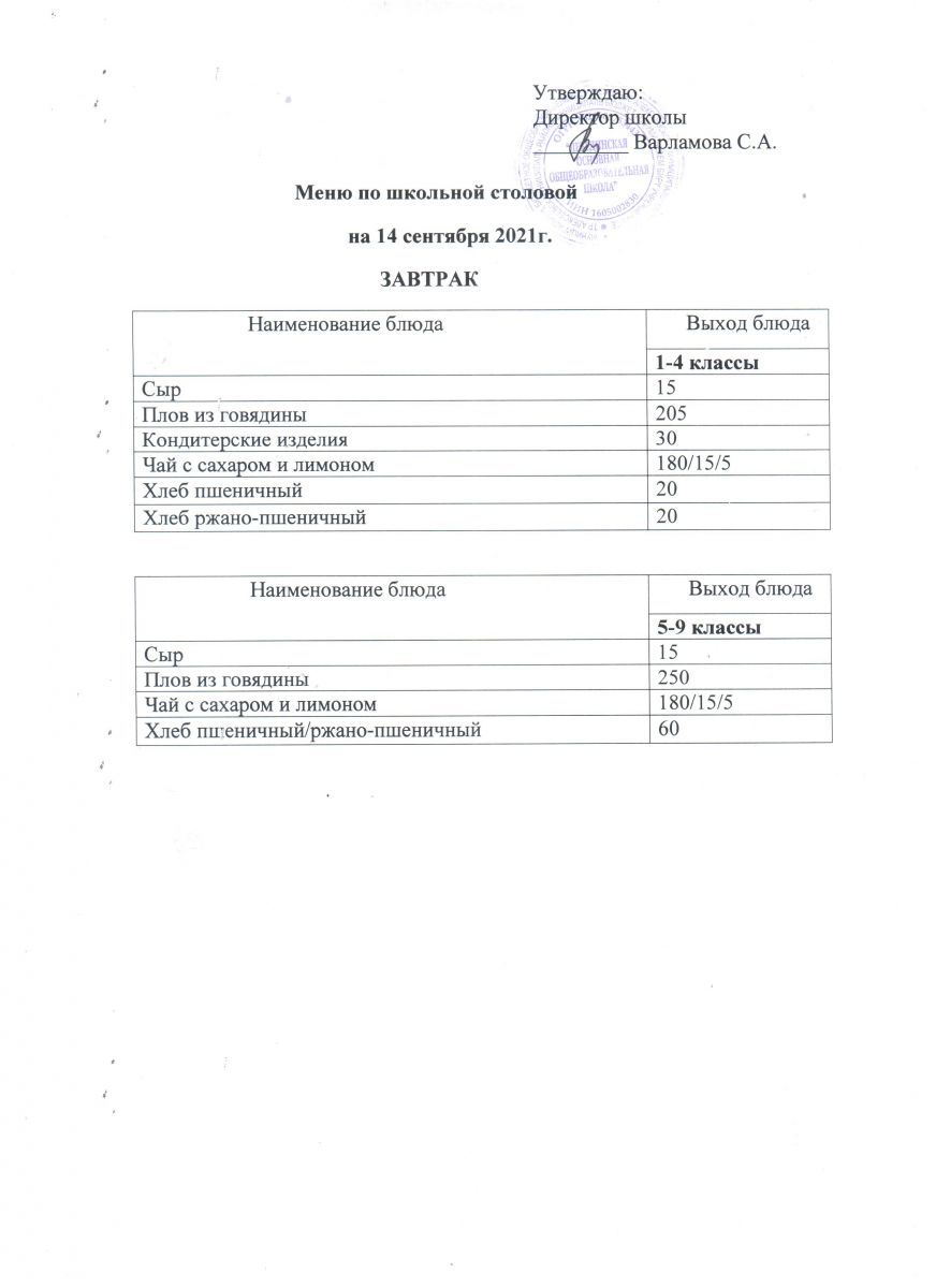 Примерное двухнедельное меню для учащихся 5-9 классов на первое полугодие 2021-2022 учебны год.